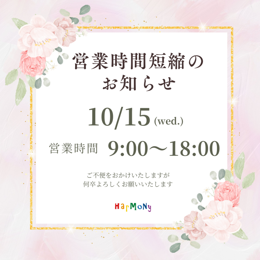 誠に勝手ながら、下記日時にて営業時間を短縮させていただきます。